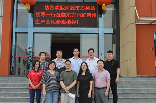 4月25日,廣東省河源市建設工程質量安全檢測站總工程師劉開紅、檢測室副主任黃寧寧一行考察東方雨虹惠州生產基地。