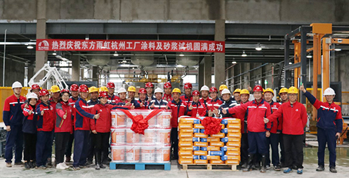 11月18日,杭州東方雨虹砂漿及防水涂料生產線全線試機成功,預計年產15萬噸砂漿,4萬噸防水涂料。這是杭州東方雨虹繼兩條改性瀝青防水卷材生產線、兩條非固化瀝青涂料生產線投產后的又一喜訊。