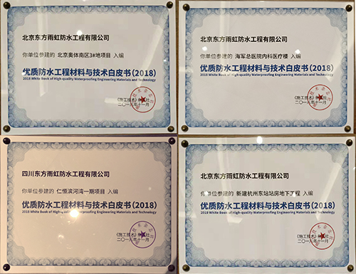 為貫徹落實促進建筑業持續健康發展的精神,提升建筑防水工程質量,中國建筑業協會建筑防水分會聯合《施工技術》雜志社共同編撰《優質防水工程材料與技術白皮書(2018版)》。該書作為促進行業技術進步的重要載體,匯集了一批優質防水工程材料與技術成果,此次的入選是對東方雨虹施工質量的認可。