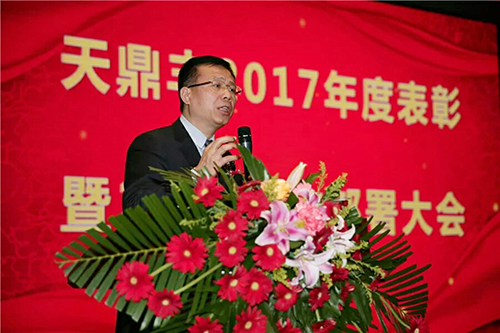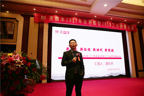 天鼎豐董事長兼總經(jīng)理聶松林作“新未來·新征程·新時代·新突破”主題報告,他對天鼎豐公司2017年生產管理、市場銷售、人力資源、綜合管理等工作進行了總結匯報,并對2018年工作作出部署。