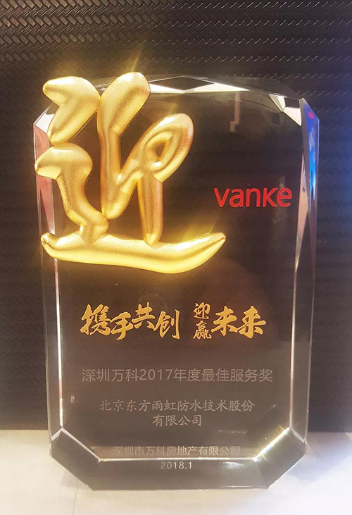 此次獲獎(jiǎng)既是深圳萬科對東方雨虹防水系統(tǒng)服務(wù)品質(zhì)的肯定,也是雙方精誠合作的見證。東方雨虹將繼續(xù)堅(jiān)持高標(biāo)準(zhǔn)、高品質(zhì)的誠信經(jīng)營和服務(wù),助力深圳萬科打造品質(zhì)工程,為和諧人居貢獻(xiàn)力量。