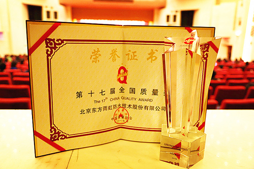 為了提升企業管理先進性、使企業具有持續創新能力和市場競爭優勢,東方雨虹于2012年開始導入卓越績效模式,并在五年的摸索和實踐過程中不斷完善。獨創的東方雨虹卓越績效跑車模型,涵蓋領導、戰略、顧客與市場、資源配置、過程管理、測量分析與改進等六大要素,全力驅動公司穩健前行。東方雨虹設置了嚴格的質量控制流程,確保出廠產品合格。期間,公司榮獲四個市長質量獎(上海、岳陽、徐州、安寧),一個行業質量獎(紡織行業)。 此次榮獲“全國質量獎”這一榮譽,是國家及社會各界對東方雨虹的經營質量和綜合競爭力的認可。東方雨虹將一如既往追求卓越,嚴守質量這一企業安身立命之本,踐行為人類為社會創造持久安全的環境的企業使命,為防水行業傳播正能量,為中國制造貢獻應有的力量。 “全國質量獎”是中國質量協會對實施卓越質量管理,并在質量、經濟、社會效益等方面取得顯著成績的組織授予榮譽,該獎項是與日本戴明獎、美國波多里奇國家質量獎、歐洲EFQM卓越獎齊名的全國性質量獎勵。