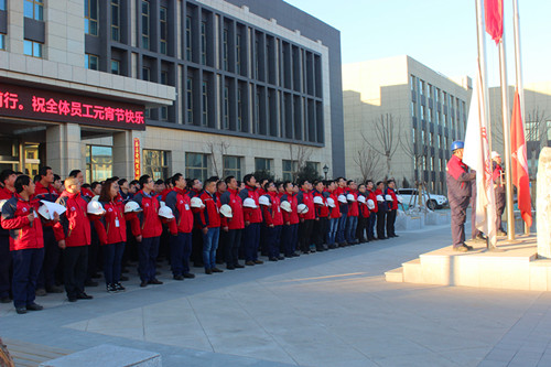 早上七點,唐山生產基地廠長馬到原在辦公樓前迎接所有員工,給大家拜年并發放開年紅包。八點,全體員工集合,進行農歷新年第一次升旗儀式,由馬到原和各部門主管級以上人員簽訂2017年度安全責任狀,組織全體員工進行安全宣誓,隨后,全體人員進行了2個小時的安全培訓。
