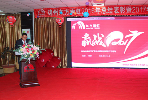 1月19日上午,東方雨虹錦州生產(chǎn)基地舉行2016年度總結(jié)表彰暨2017年度工作部署大會,當(dāng)?shù)卣I(lǐng)導(dǎo)、全體員工及部分家屬齊聚一堂,分享工作經(jīng)驗(yàn),表彰先進(jìn),齊頭并進(jìn),贏戰(zhàn)2017。