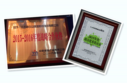 【江蘇臥牛山榮獲“2015年度朗詩優(yōu)秀供應(yīng)商”、“中南集團(tuán)2015—2016年度戰(zhàn)略合作伙伴”】 2016年5月20日,朗詩綠色地產(chǎn)在南京河西金陵會議中心以“合作共贏,共創(chuàng)未來”為主題,隆重舉辦了2016年度供應(yīng)商大會,300多位供應(yīng)商代表應(yīng)邀出席。會上,朗詩地產(chǎn)授予江蘇臥牛山公司“2015年度朗詩優(yōu)秀供應(yīng)商”稱號。 2016年4月22日,中南集團(tuán)2016年供方大會在江蘇海門隆重召開,江蘇臥牛山公司應(yīng)邀出席,并在大會上獲得中南集團(tuán)“2015—2016年度戰(zhàn)略合作伙伴”稱號。 未來隨著企業(yè)的快速發(fā)展,臥牛山將與各合作伙伴攜手走得更遠(yuǎn)。