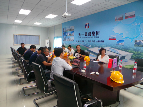 會議結束后,雙方一起參觀了天津市西青體育館施工現場,易帥就施工要點及細部節點為設計師們進行逐一講解,得到了院方對東方雨虹TPO單層屋面防水系統的認可,為雙方進一步開展友好交流合作奠定了基礎。