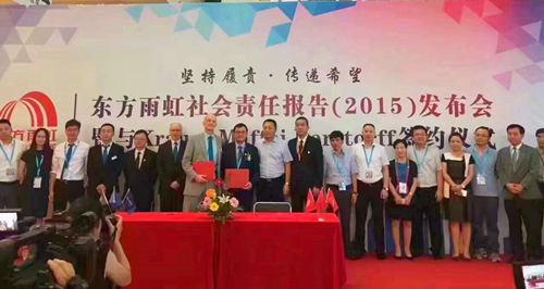 與此同時(shí),14日上午東方雨虹發(fā)布了《2015年企業(yè)社會(huì)責(zé)任報(bào)告》,這是東方雨虹連續(xù)第8年發(fā)布社會(huì)責(zé)任報(bào)告了,再次為國(guó)家、為社會(huì)、為客戶、為員工、為股東呈上了一份滿意的答卷。中國(guó)建筑防水協(xié)會(huì)秘書長(zhǎng)朱冬青先生、副會(huì)長(zhǎng)苗燕女士應(yīng)邀出席了本次發(fā)布活動(dòng)。