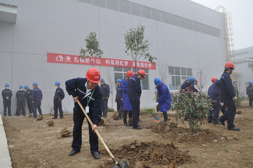 活動伊始,徐州生產(chǎn)基地廠長陽文新講解了本次植樹活動的意義與注意事項,并表示2016年徐州生產(chǎn)基地將嚴(yán)格按照“一個中心,二個打造,三個重點,四個成為”為指導(dǎo)思想,打造員工全員參與、部門高效協(xié)作的工作氛圍。植樹過程中,員工們積極參與、共同協(xié)作,挖坑、植樹、填坑、培土、踩實、扶正、澆水,精心呵護(hù)自己親手種下的樹苗,并貼上了寫有自己名字的標(biāo)簽,希望它們能夠伴隨自己一起成長。
