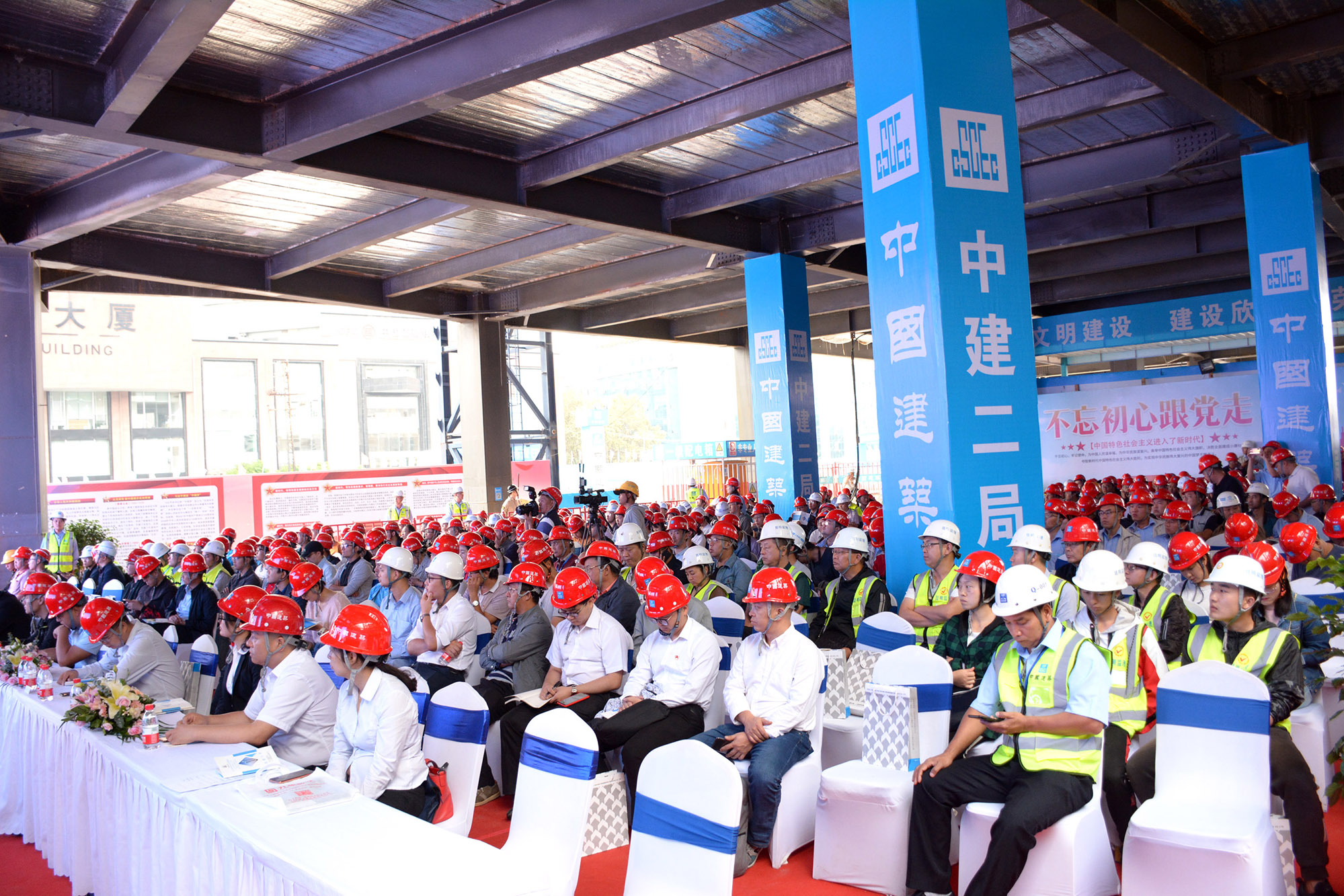 本次活動由云南省住房和城鄉建設廳指導,中共云南省建筑業協會支部委員會、云南省建筑業協會主辦,中共中建二局昆明春之眼商業中心項目支部、中國建筑第二工程局有限公司云南分公司承辦,來自國家、云南省內知名各總包單位以及云南省建筑業協會會員單位約200余人參加。