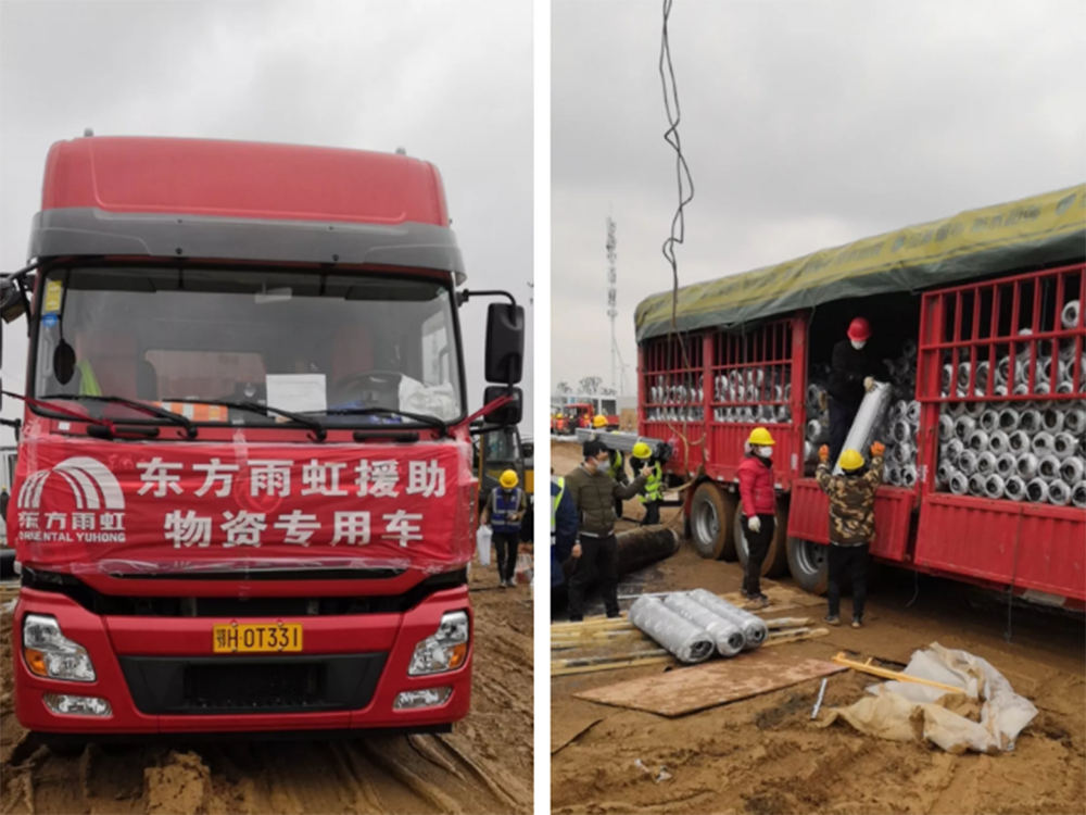 面對(duì)嚴(yán)峻的“疫情”,荊門東方雨虹在得知武漢雷神山醫(yī)院需要物料支援后,迅速將所需物料:東方雨虹SAM-921高強(qiáng)型自粘瀝青防水卷材裝車,堅(jiān)定沖向抗疫一線。