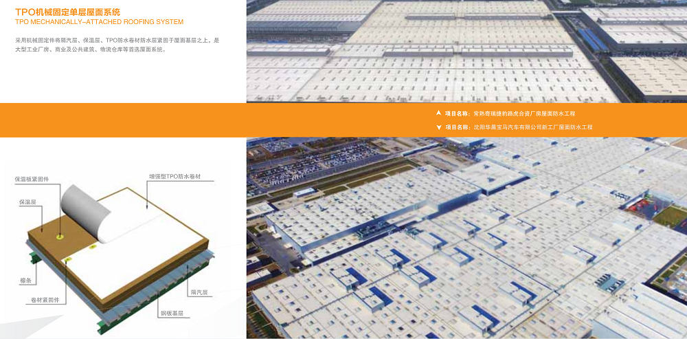 此外,本次亮相的TPO屋面系統(tǒng),是一款將反射隔熱高分子防水卷材外露使用的屋面系統(tǒng),可降低室內(nèi)溫度,減少能源消耗,降低城市熱島效應(yīng),材料耐久年限可與光伏壽命相匹配,即便達(dá)到材料使用壽命后直接進(jìn)行更換,無需像傳統(tǒng)屋面進(jìn)行拆除保護(hù)層時造成大量建筑垃圾及噪音污染。