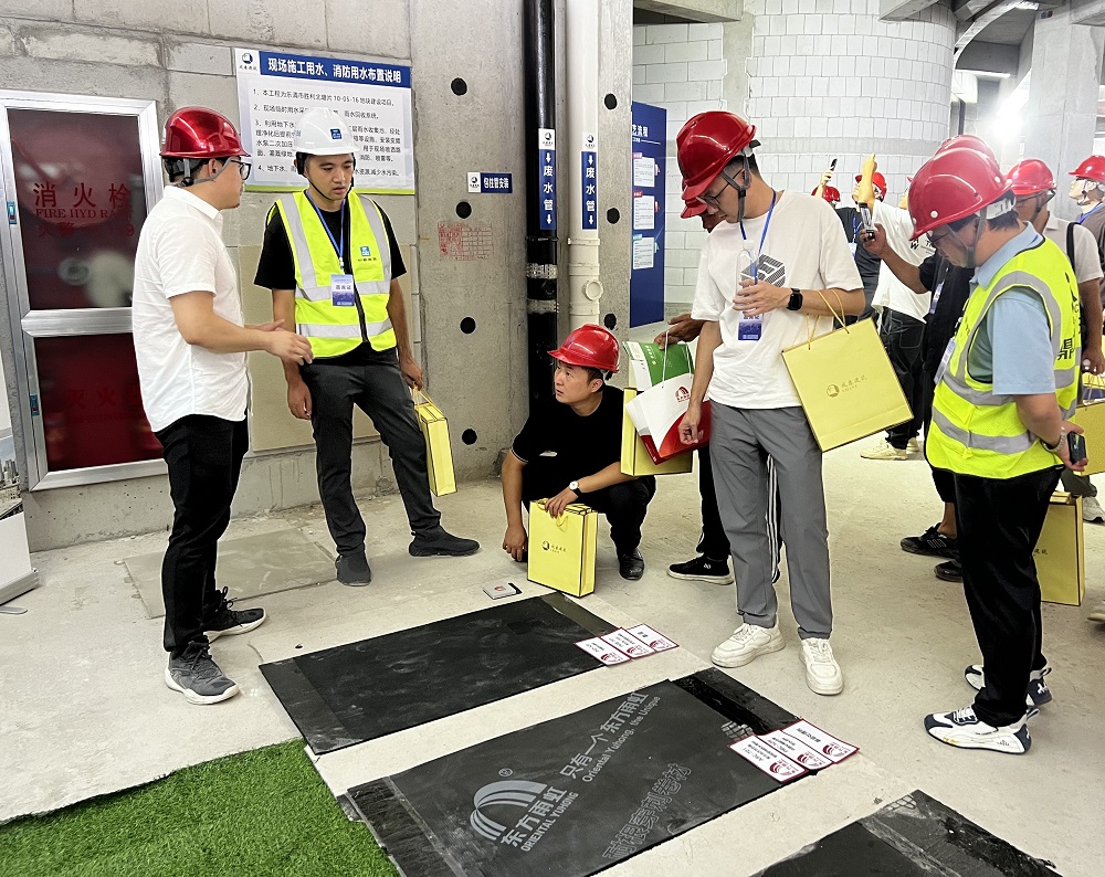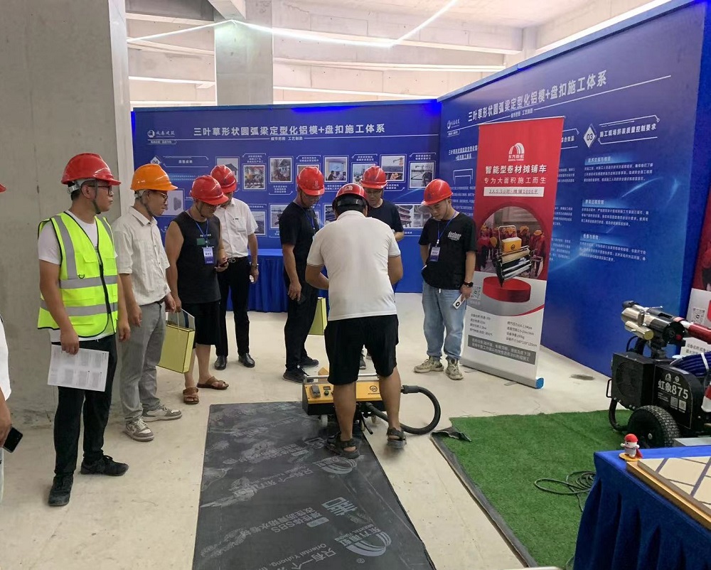 活動(dòng)現(xiàn)場,東方雨虹技術(shù)人員詳細(xì)講解金屬屋面TPO等產(chǎn)品的性能優(yōu)勢、環(huán)保特性及應(yīng)用場景,并將材料選擇、安全規(guī)范、施工工法等影響工程效果關(guān)鍵因素融于底板、側(cè)墻、頂板防水施工打樣展示。此外,通過操作智能卷材攤鋪機(jī)、聚氨酯噴涂機(jī)等設(shè)備,全方位呈現(xiàn)其功能與特性,讓現(xiàn)場觀眾近距離感受產(chǎn)品的獨(dú)特性。
