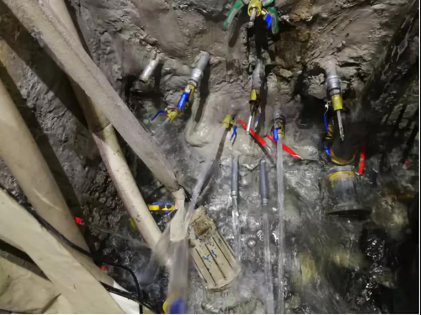 變無規(guī)則涌水為有規(guī)則引流,讓水在設定的位置流動。導流管可以使用鍍鋅鋼管、PP管,管徑大小可以自主選擇。PP管以內徑可以安裝上注漿針頭為主。鍍鋅鋼管可以選擇6分或1寸,通過外絲直接,內絲直接,彎頭,銅閥等連接,最終在銅閥處安裝注漿針頭。